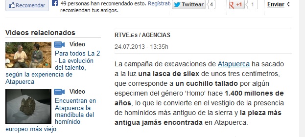 Neuronas fritas. RTVE.es asegura que los restos de Atapuerca tienen 1.400 millones de años